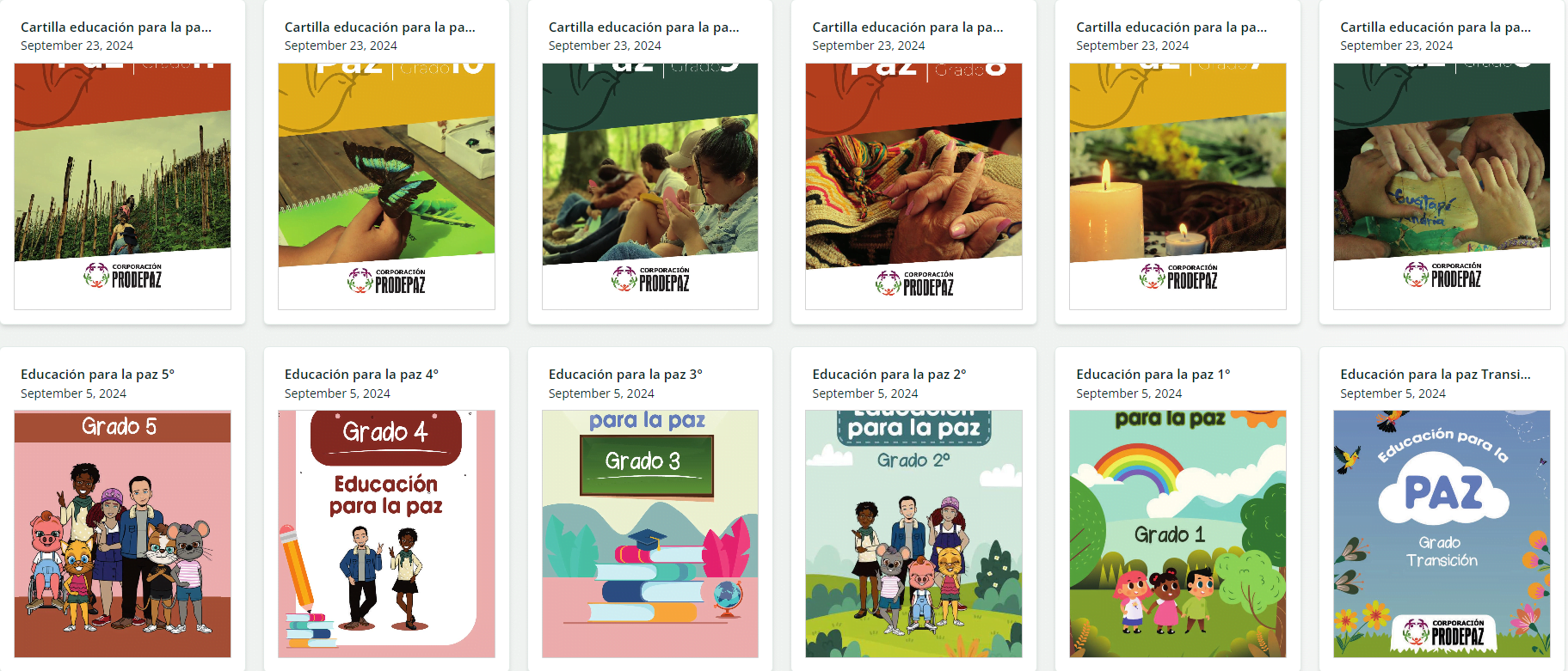 Estas cartillas son una herramienta pedagógica para que los niños, niñas, adolescentes y jóvenes, desde el grado 0 hasta el grado 11, puedan aprender y practicar valores de convivencia pacífica, respeto por la diversidad y resolución no violenta de conflictos. A través de estas cartillas se espera contribuir al desarrollo de una nueva generación que sea promotora de paz en el territorio.